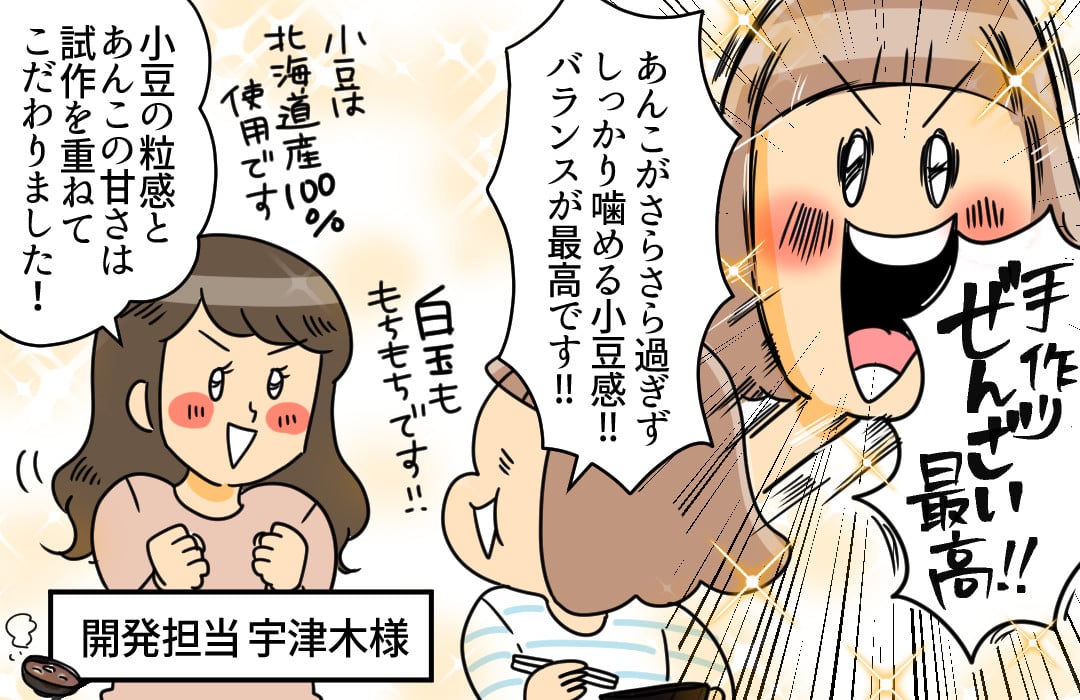 開発担当の宇津木さんのこだわりでもある北海道産小豆の味がおいしい!