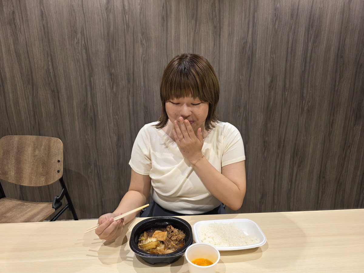 山田「私は肉2倍の『W牛すき焼き弁当』をいただきます!…うん、めっちゃおいしい!牛肉のうまみがしっかり出ていて、柔らかいのに食べごたえ抜群です。家ですき焼きを作って、できたてをすぐに食べているようなやわらかさで、まさに“作りたて感”がありますね。野菜も味がしっかり染みているのに、程よく食感が残っているのが嬉しいです」
