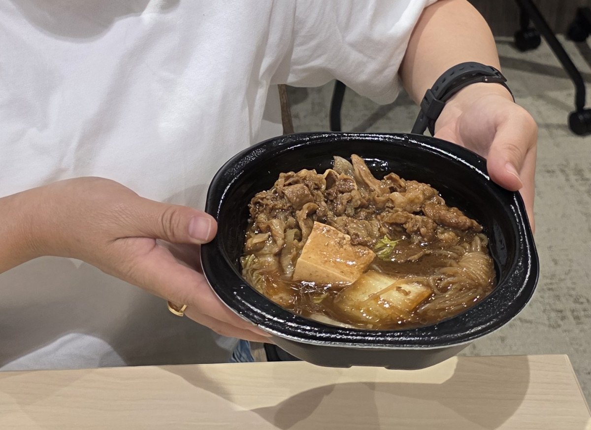 山田「それに、つゆだく!つゆがたっぷりで、思わず“二次利用”したくなるレベル。ごはんを入れておじやにしたり、おかわり用のうどんを煮たりもできちゃうのでは!? 年末年始にちょっと贅沢して作ったすき焼きみたいな味わいを、まさかお弁当で楽しめるなんてびっくりです。このボリュームと内容を自宅で一から作ろうとしたら、この値段では絶対ムリ。Wサイズなら家族でシェアするのも良さそうですよね。これはもうリピ決定!」