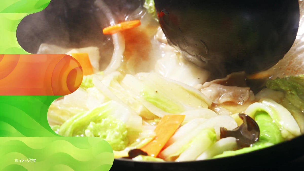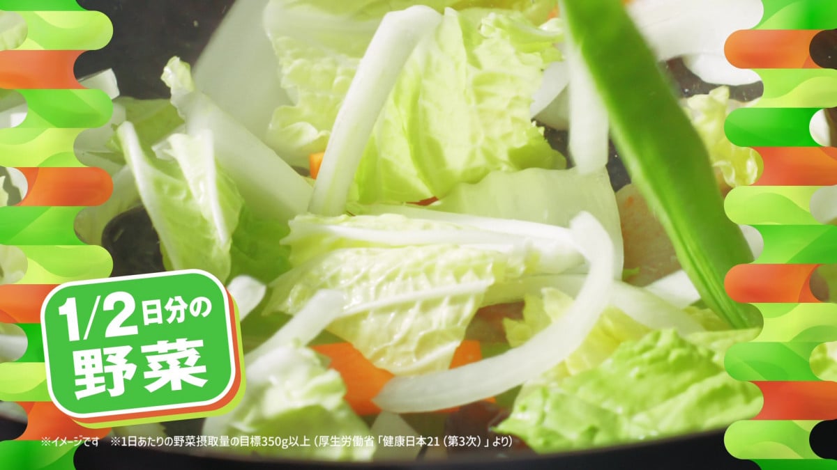 豚肉と白菜・人参・玉ねぎなど1/2日分の野菜※1を使用し、あつあつでとろみのある中華餡をたっぷり絡めた『中華あんかけごはん』の美味しさを、躍動感あふれるシズル表現で描きました。さらに、もちもちとした食感が特長の『中華あんかけ麺』も登場します。冬限定の大人気メニュー『中華あんかけ』シリーズの魅力が詰まったCMとなっています。