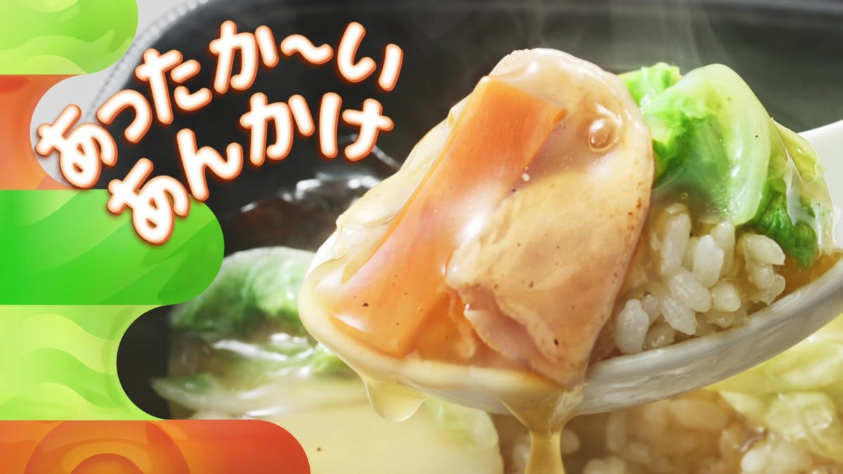たっぷりの野菜に、とろりと温かい中華餡を絡めた『中華あんかけごはん』の魅力を、躍動感あふれるシズル表現を軸に描きました。