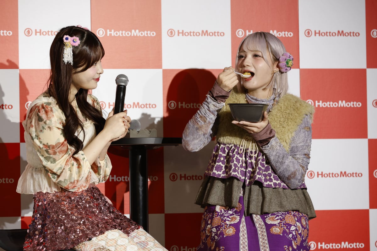 本CMの公開および新商品発売を記念し、CANDY TUNEの皆さまをゲストに迎え、「ほっともっと新CM発表会」を開催しました。本イベントでは、新TVCMを初公開。トークセッションでは、新商品『焼肉ビビンバ』をCANDY TUNEのメンバーが試食し、食レポに挑戦しました。さらに、新曲「HOT!SCOOP!」も初披露され、会場は大きな盛り上がりを見せました。